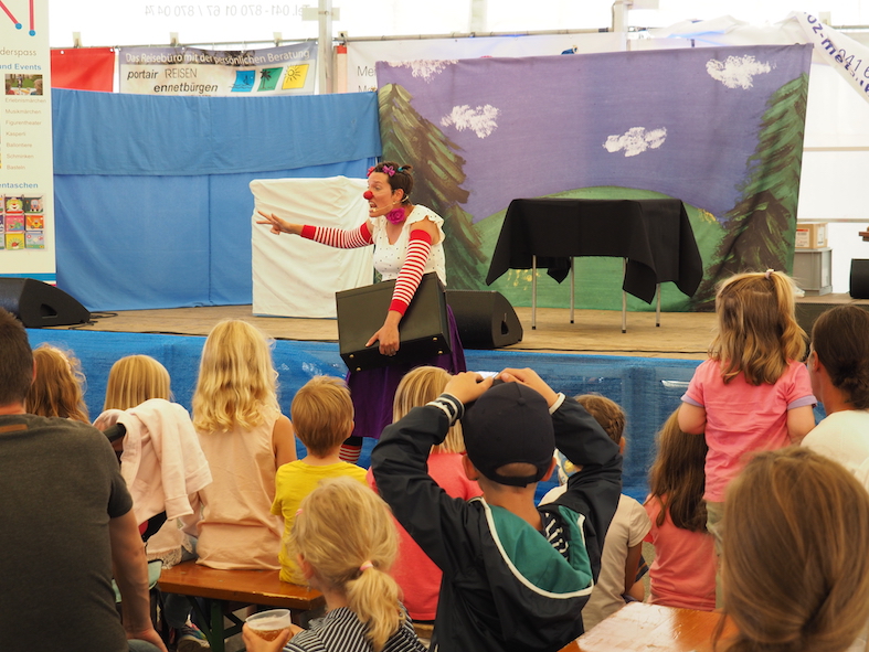 Mit ihrer lebensfrohen und offenen Art fasziniert und unterhaltet sie Kinder und Erwachsene an jedem Fest.